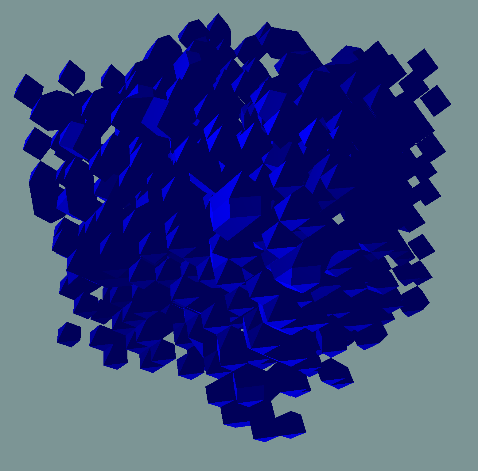 A GPU version of the marching cubes algorithm to implement real-time meshing of dynamic scalar fields. Using this technique we can generate high-quality meshes incredibly quickly out of generic 3D data clouds. Implementing this on a series of trigonometric waves, we can generate an ocean of Legos!