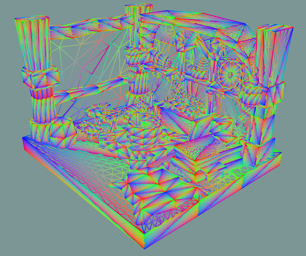 This project explores the use of low polygon models, where the renderer dynamically generates more triangles to enhance the detail of objects that are closer to the camera.